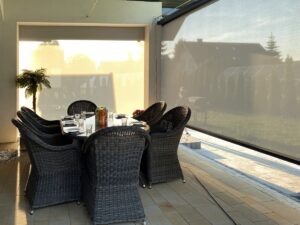 Rolety zewnętrzne screen zip firmy Anwis świetnie pasują do różnych aranżacji. Jako rolety tarasowe, chronią przed słońcem, wiatrem i deszczem. Tworzą przyjemne miejsce na odpoczynek na zewnątrz.